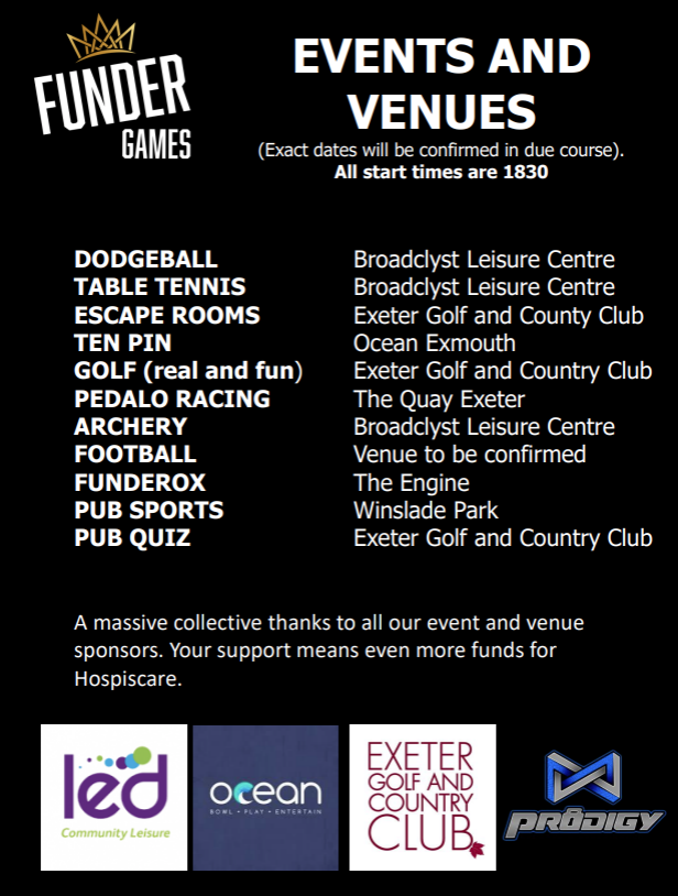 – Ottery St Mary Sports Centre start time 1830
